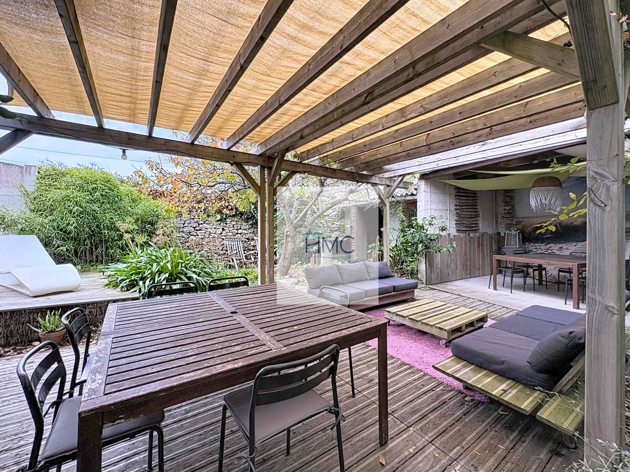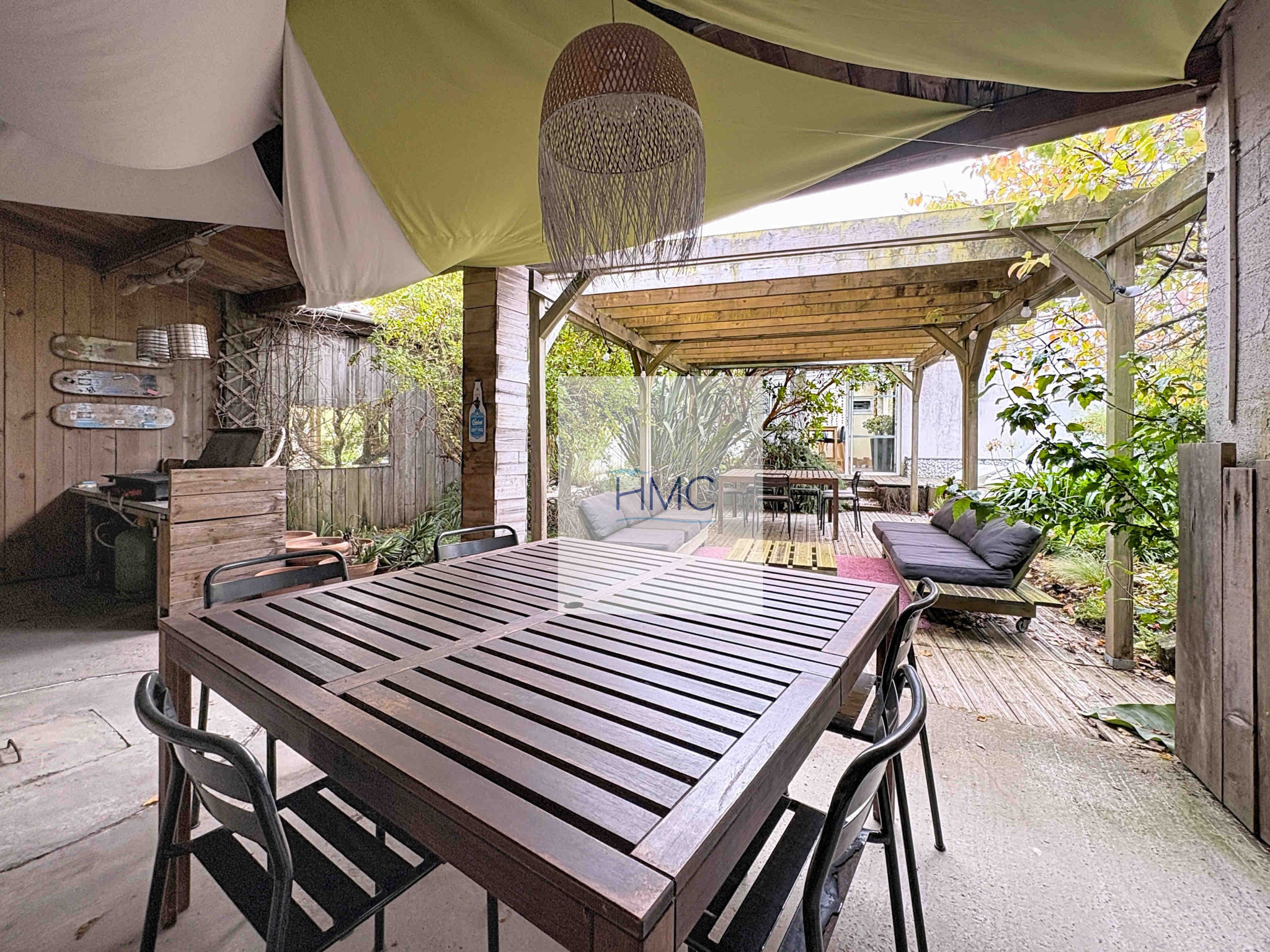 A l’extérieur, on trouve une belle pergola et 1 préau / cuisine d’été.