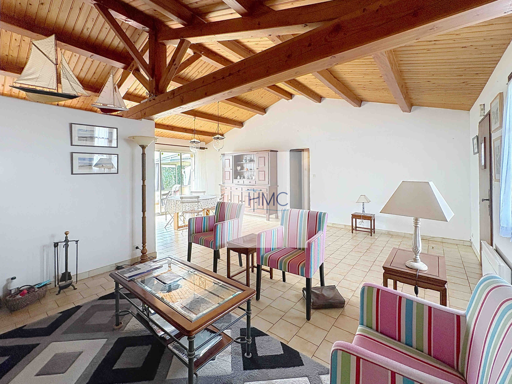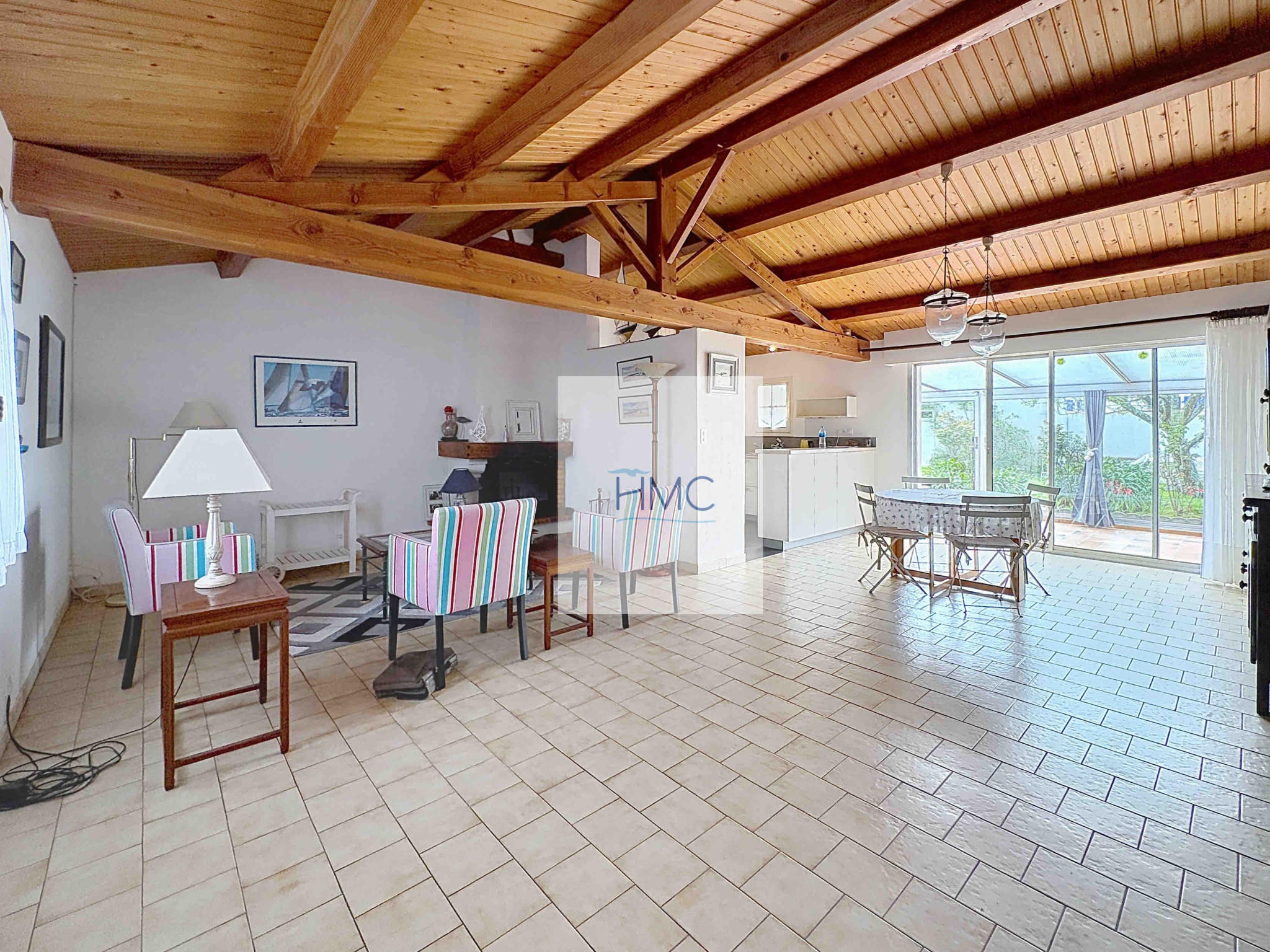Avec 85m2 habitables environ, cette maison est composée d’un beau salon-séjour avec cheminée, d’1 cuisine aménagée et équipée ouverte sur le séjour, d’1 véranda, de 2 chambres, d’1 salle d’eau et d’1 wc, et d’une autre pièce à usage de chambre d’appoint.