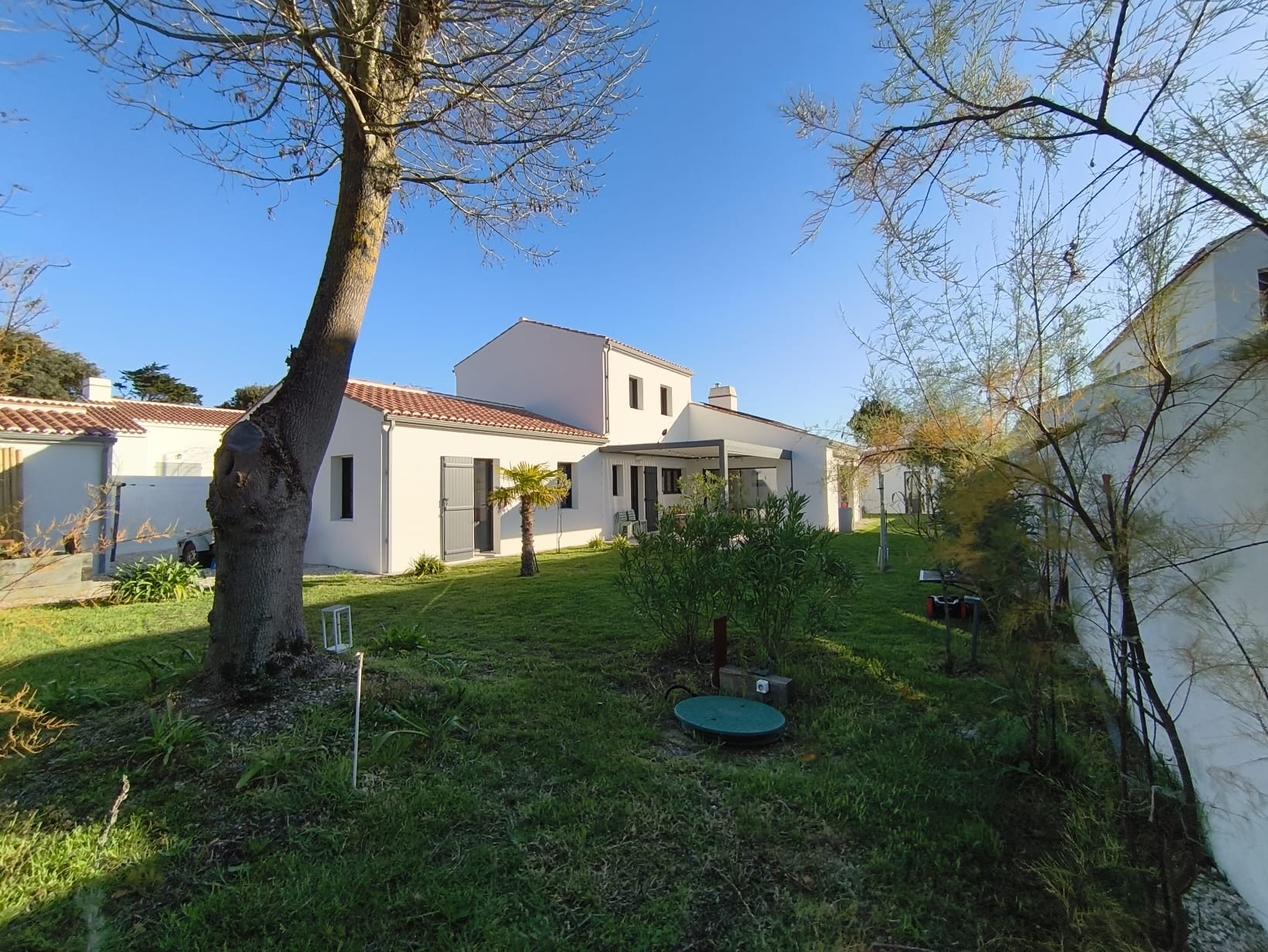 A 100 m de la plage de la Linière et 400 m du port de l’Herbaudière, grande maison familiale récente de 6 chambres édifiée sur un terrain de 820 m2